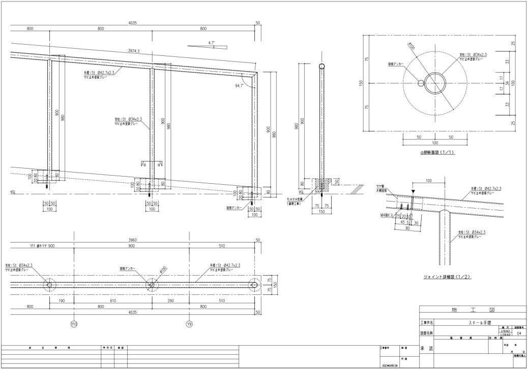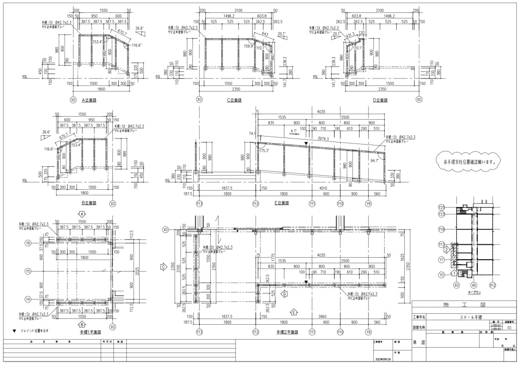 手すり、カーテンウォール、ファサード部材などの建築金物は、施工段階での精度が非常に重要です。